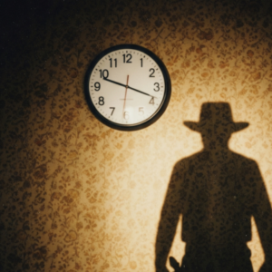 Así lo veo cada vez que toca cambiar la hora del reloj de la cocina, porque tengo que subirme a una silla, descolgarlo, darle la vuelta y girar la ruedecita que mueve la manecilla minutero. Después, comprobar que sea la hora correcta y volver a colgarlo. Esta es la parte más difícil porque se tiene que hacer a ciegas, tentando hasta dar con la alcayata que lo sostiene. Todo el procedimiento dura apenas un minuto. Un minuto durante el cual mi espalda se convierte en una diana para los disparos de un traidor que se esconda tras las cortinas de las ventanas del edificio de enfrente y esté esperando, como esperó Bob Ford a Jesse.