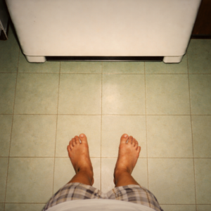 Sin embargo, aquí estoy, sacando el yogurt con las zapatillas de suelas de goma en los pies.